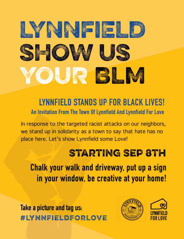 Come support Black lives! Let’s show up and show our neighbors some love. Join us on the Lynnfield Town Common to hold signs together.